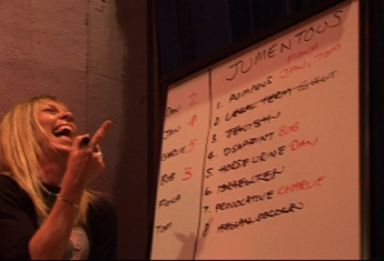 Scorer Alison Ritchie enjoys the answers concocted for "Jumentous".